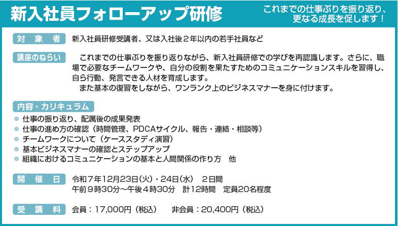 令和7年11月・12月に開催予定の社員研修の受講者を募集しています。